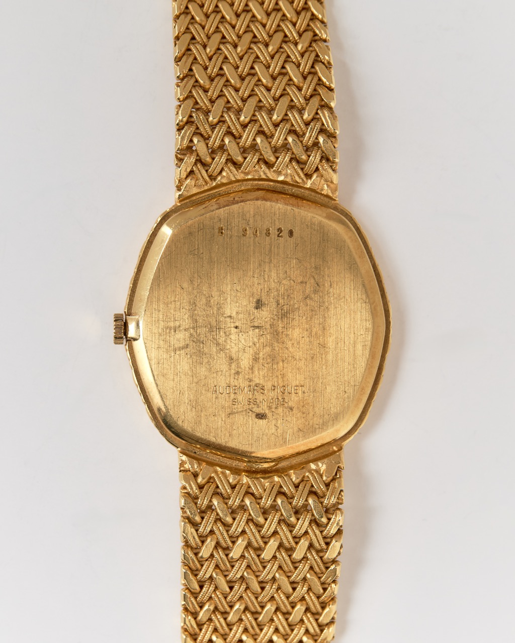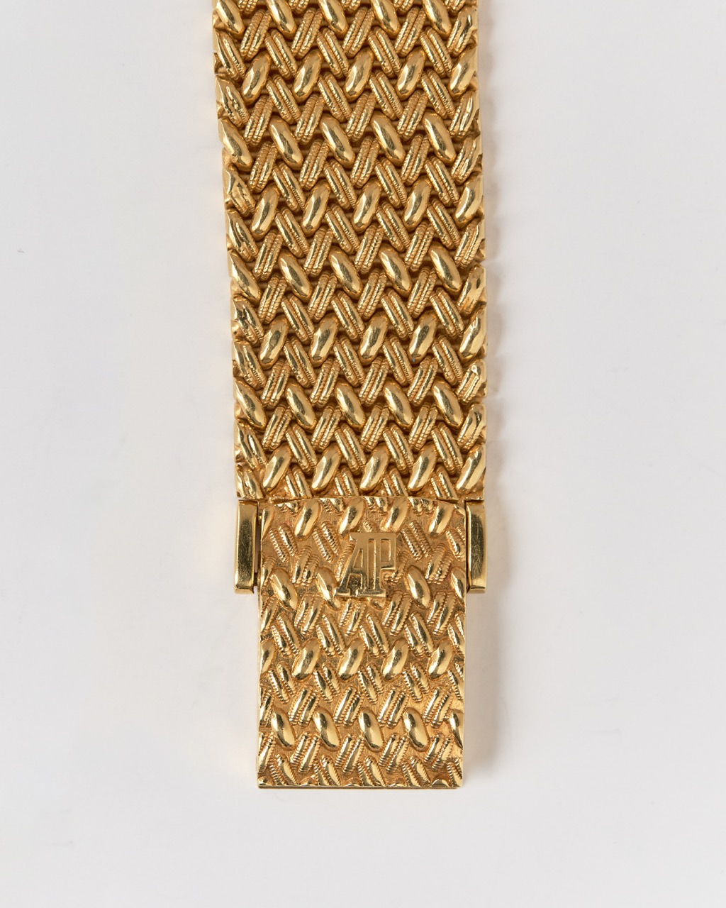 During the 1980s and 1990s, Audemars Piguet expanded its creative identity beyond traditional complications, producing finely executed jewelry watches that highlighted hand-finishing, precious materials, and sculptural form. This reference exemplifies that philosophy through its woven gold bracelet construction and meticulously executed diamond dial.